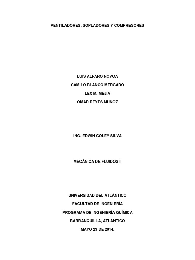 ventiladores, sopladores y compresores son su construccin fsica y las
