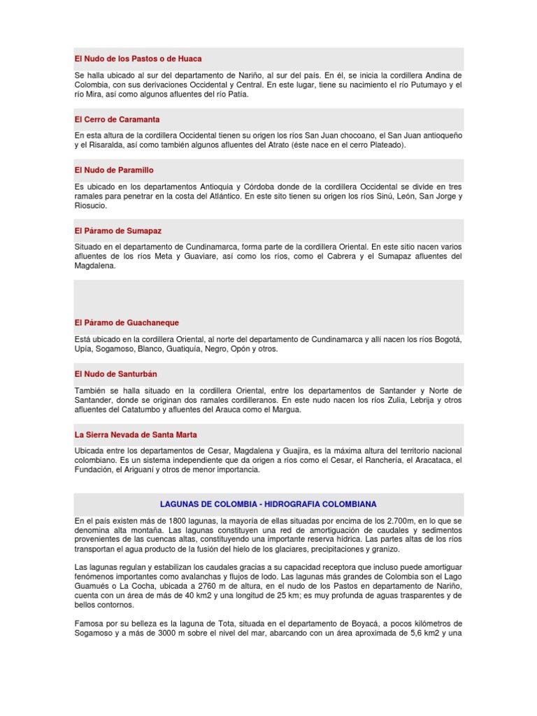 LAGUNAS DE COLOMBIA - HIDROGRAFIA COLOMBIANA