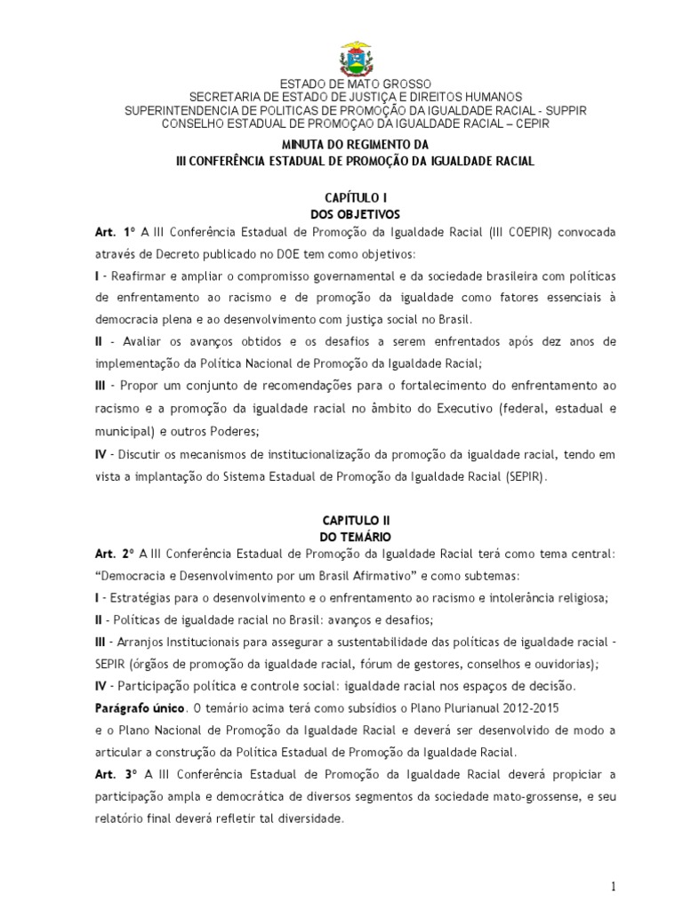 Art. 1 A III Conferncia Estadual de Promoo da Igualdade Racial (III COEPIR) convocada