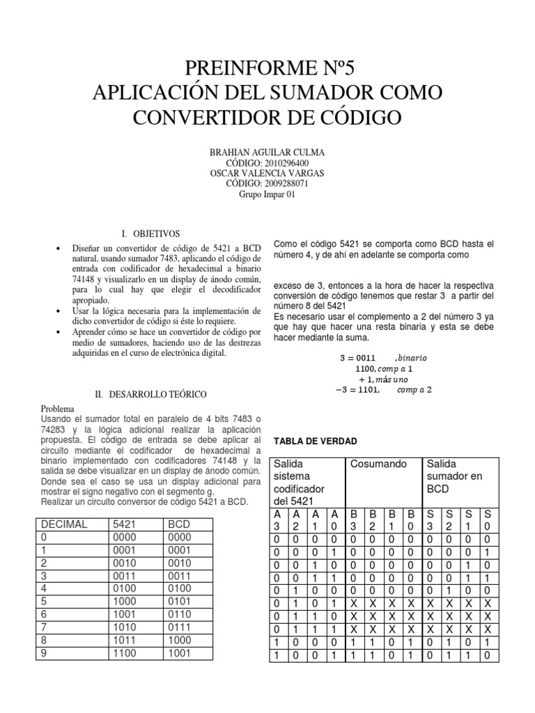 Disear un convertidor de cdigo de 5421 a BCD