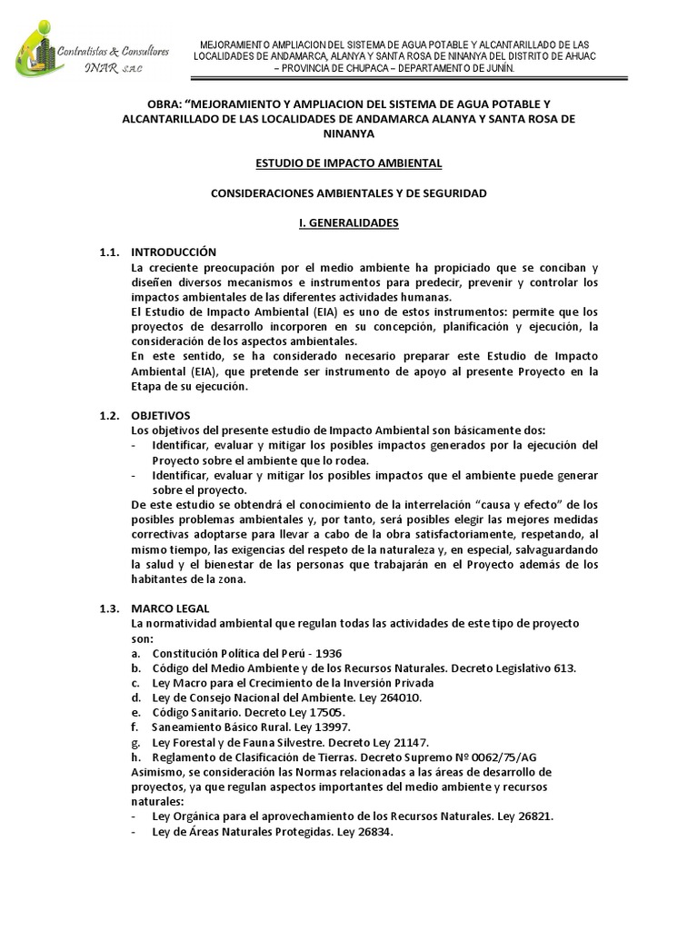 Los objetivos del presente estudio de Impacto Ambiental son bsicamente dos: