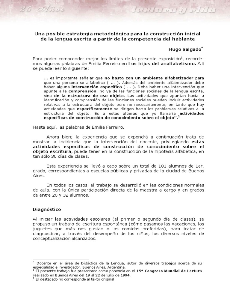 Salgado, H. (1992) De la oralidad a la escritura: el proceso de construccin