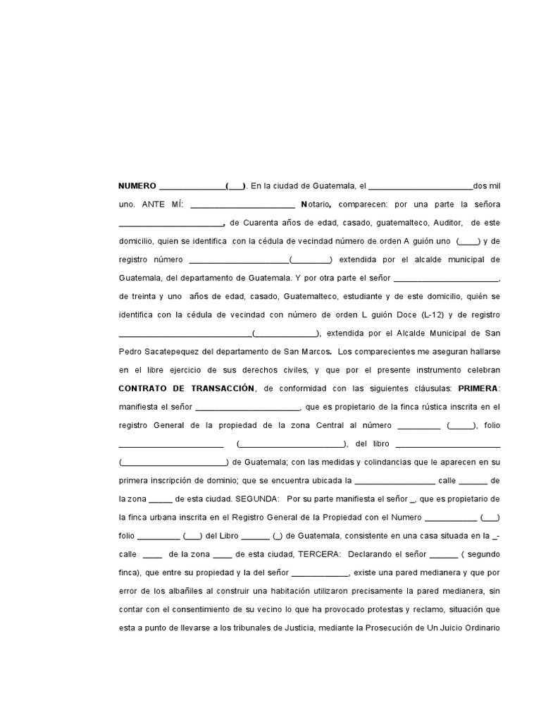 CONTRATO DE TRANSACCIN, de conformidad con las siguientes cl4usulas: PRIMERA: