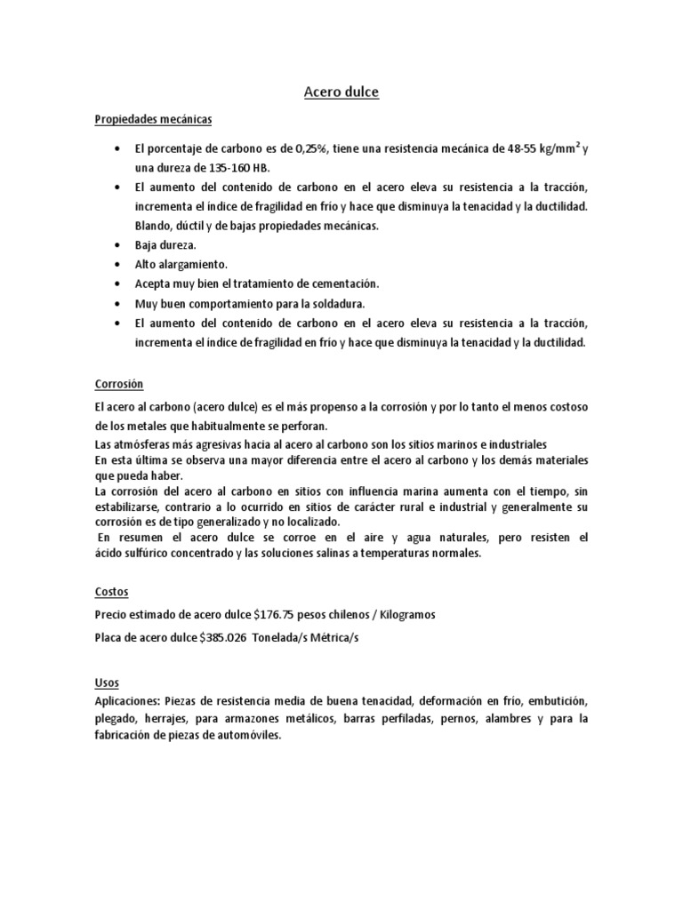 El acero al carbono (acero dulce) es el ms propenso a la corrosin y por lo tanto el menos costoso