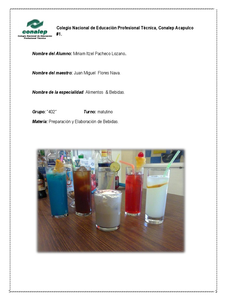 Materia: Preparacin y Elaboracin de Bebidas.