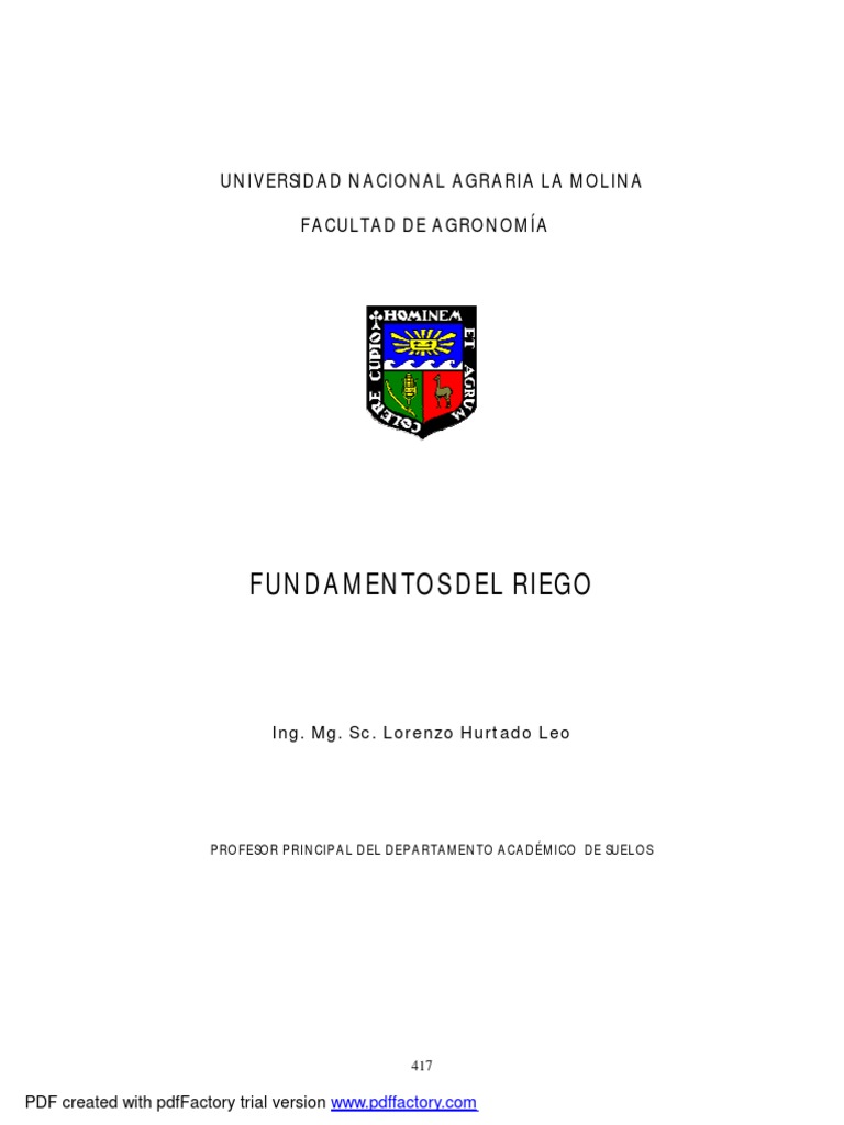 de los parmetros que intervenan en el riego, llevaron a la conclusin de que esta definicin era