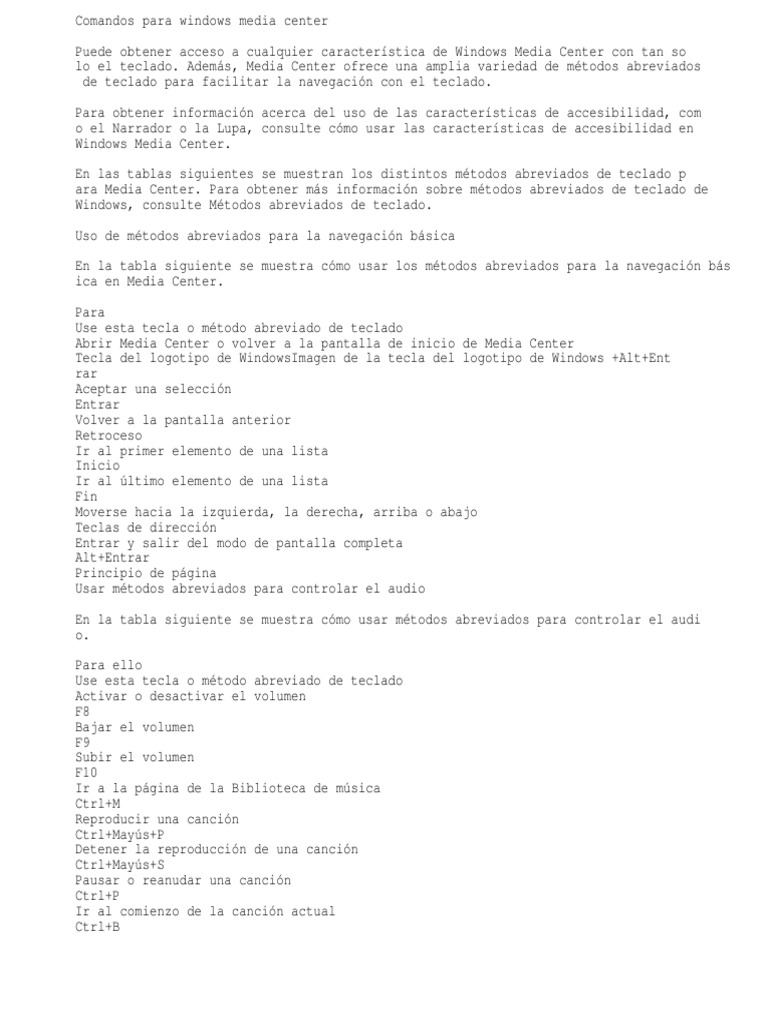 lo el teclado. Adems, Media Center ofrece una amplia variedad de mtodos abreviados