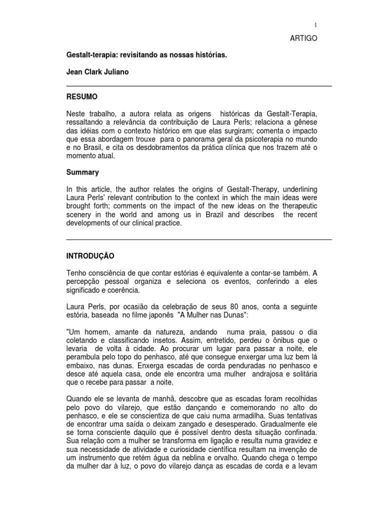 Neste trabalho, a autora relata as origens histricas da Gestalt-Terapia,