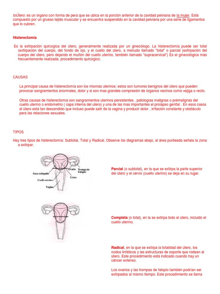 (extirpacin del cuerpo, del fondo de ojo, y el cuello del tero, a menudo llamado "total" o parcial (extirpacin del