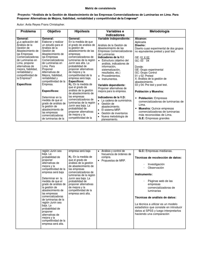 Proyecto: Anlisis de la Gestin de Abastecimiento de las Empresas Comercializadoras de Luminarias en Lima. Para