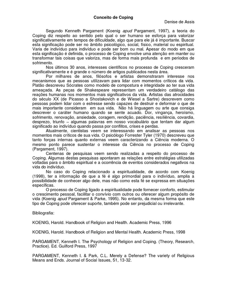 vida (Koenig apud Pargament & Parke, 1995). No entanto, da mesma forma que este
