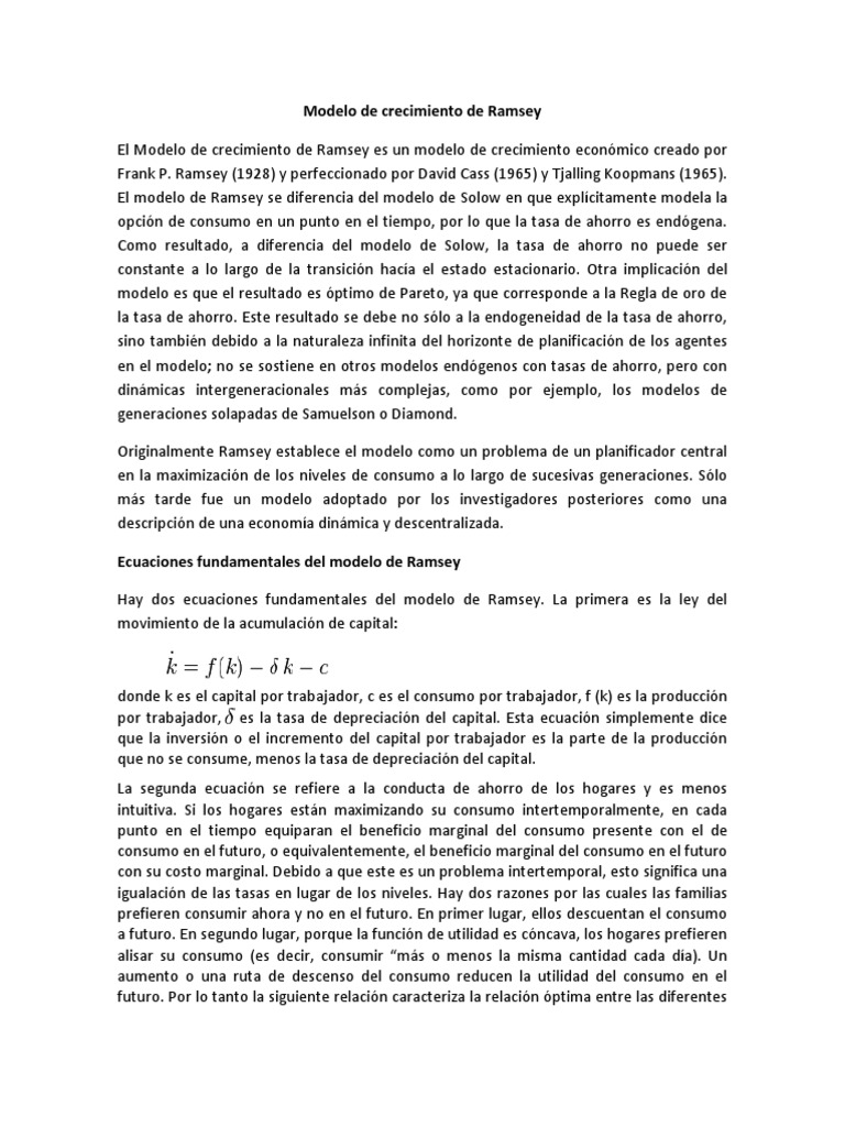 El Modelo de crecimiento de Ramsey es un modelo de crecimiento econmico creado por