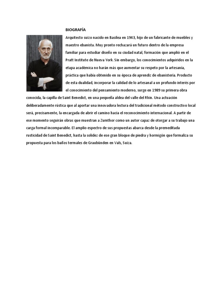 ese momento seguirn obras que muestran a Zumthor como un autor capaz de otorgar a su trabajo una