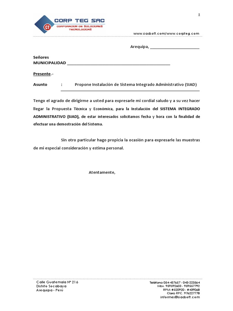 Asunto : Propone Instalacin de Sistema Integrado Administrativo (SIAD)
