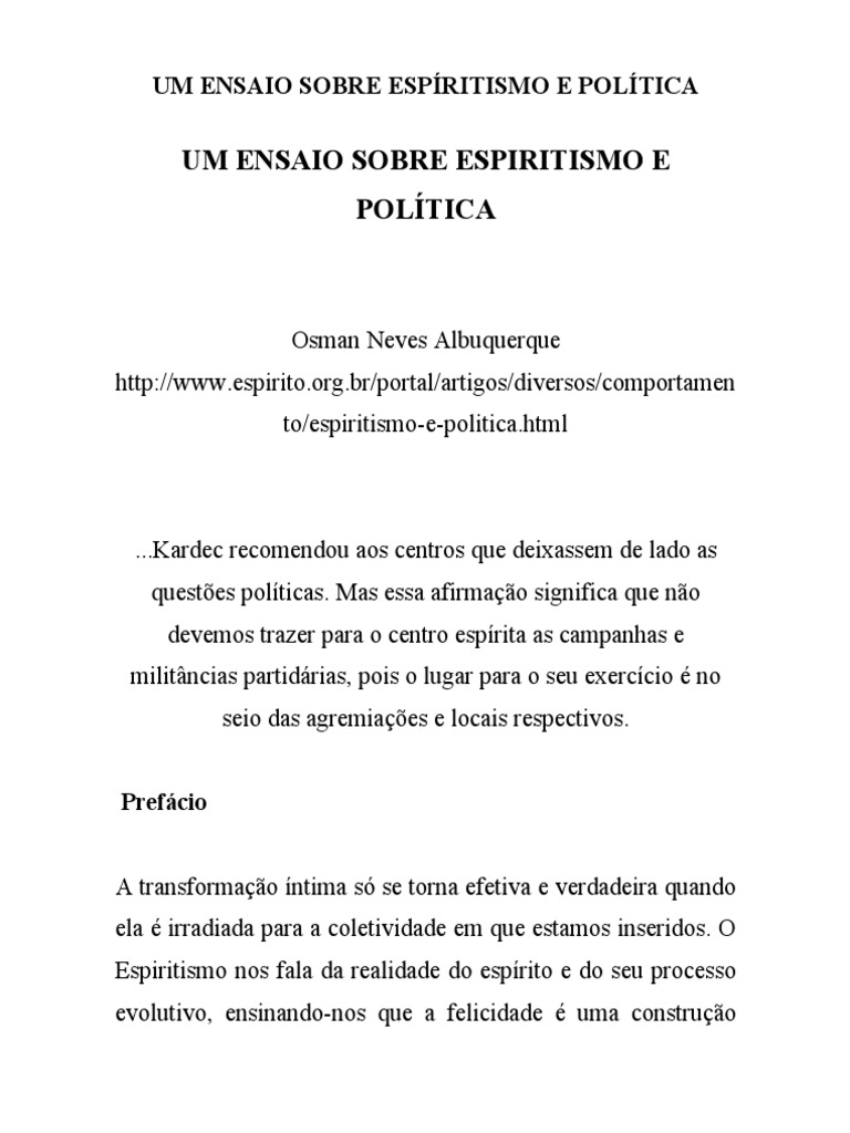 Para o espírita, essa ação política deve ser sempre inspirada nos