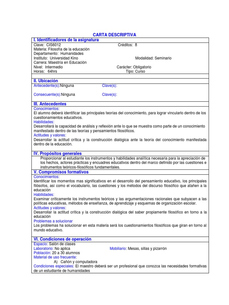 informacin que pueda mostrarlo ante la relacin sobre la Filosofa de la educacin