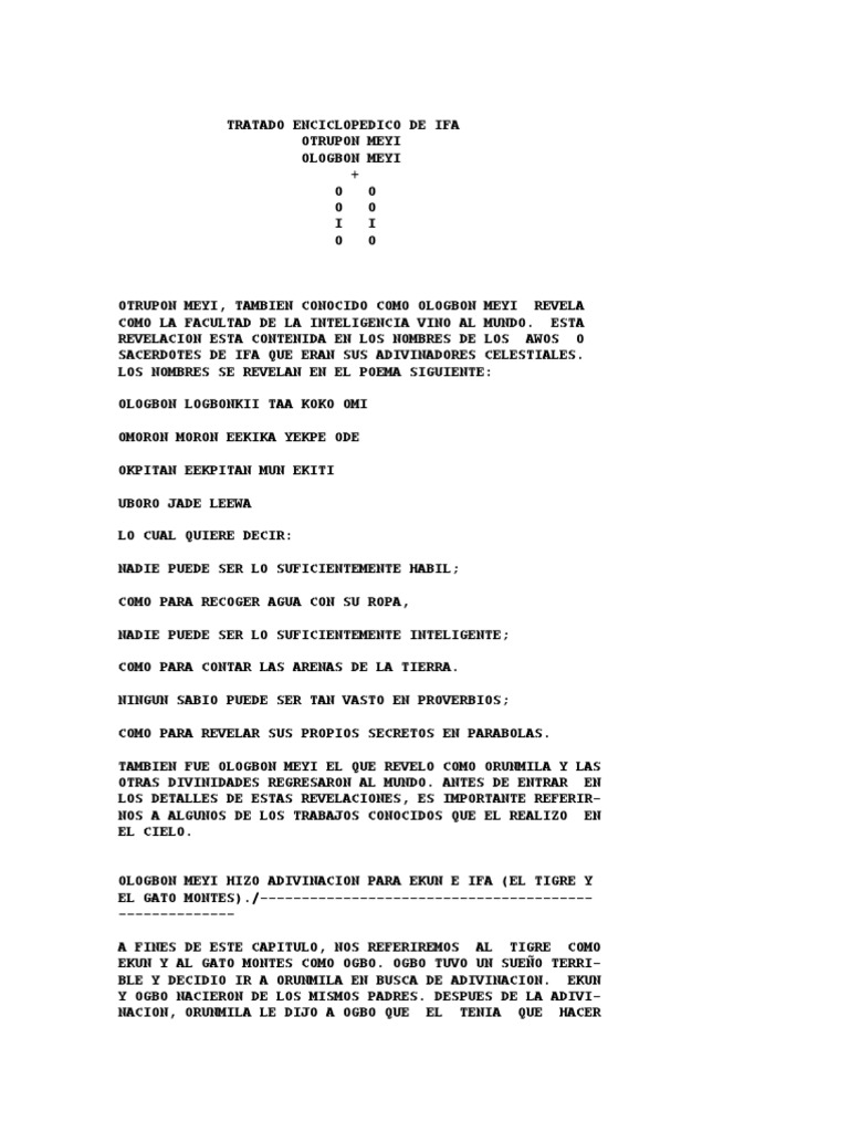 OTRUPON MEYI, TAMBIEN CONOCIDO COMO OLOGBON MEYI REVELA