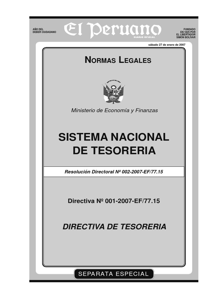 DIRECTIVA DE TESORERA N 001-2007-EF/77.15