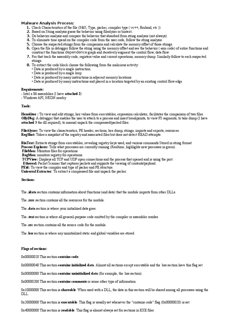 1. Check Characteristics of the file (Md5, Type, packer, compiler type ( vc++, Borland, etc ))