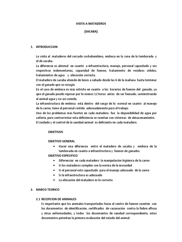Hacer una diferencia entre el matadero de sacaba y embeca de la