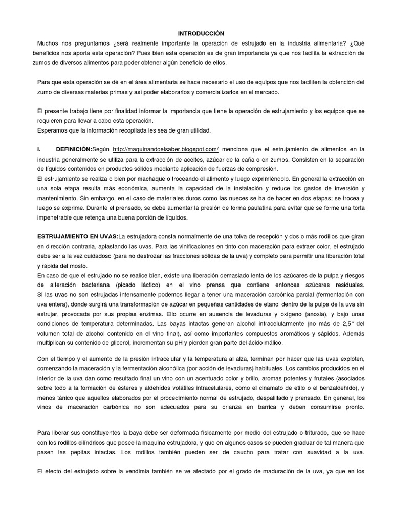 El presente trabajo tiene por finalidad informar la importancia que tiene la operacin de estrujamiento y los equipos que se