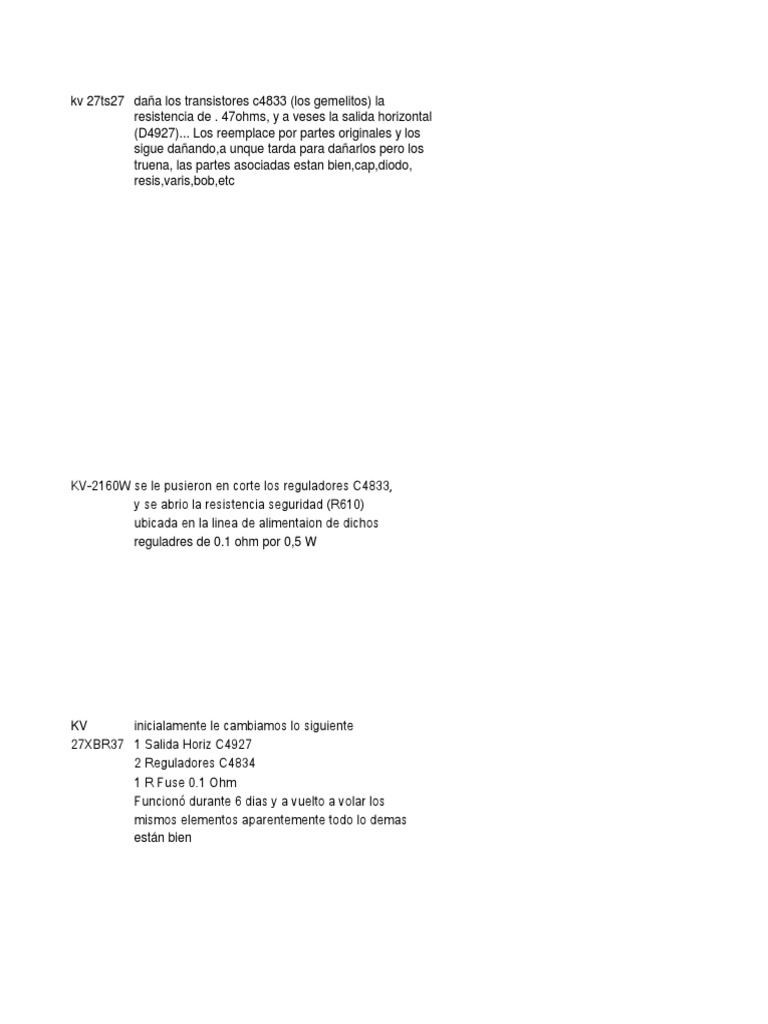 KV 2970 sony 29 que vino con el horizontal quemado, y