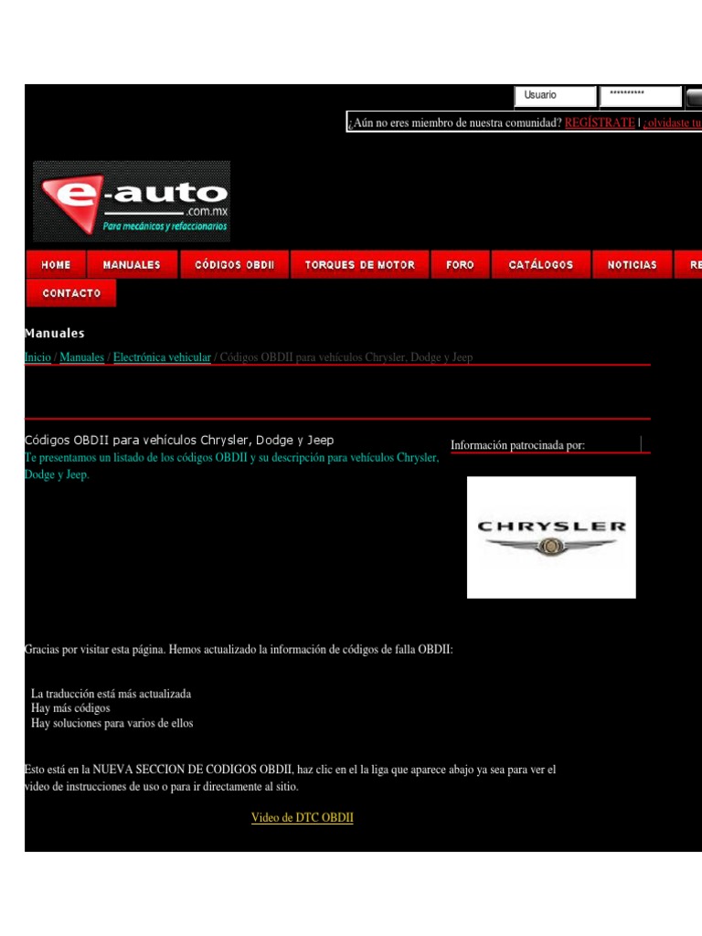 Inicio / Manuales / Electrnica vehicular / Cdigos OBDII para vehculos Chrysler, Dodge y Jeep