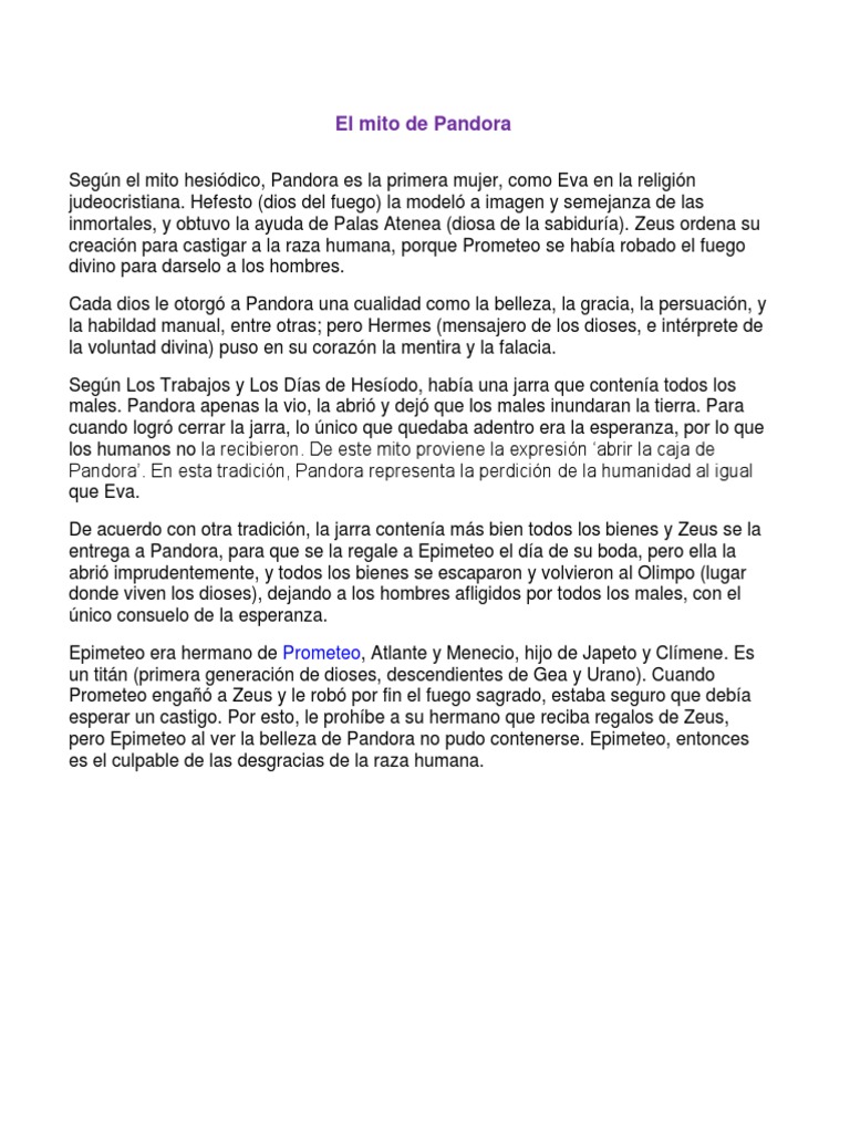 Prometeo. Esta mujer, llamada Pandora, y llevaba con ella una caja llena de terribles