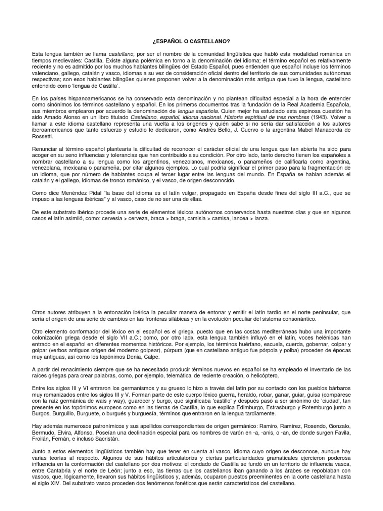 sido Amado Alonso en un libro titulado Castellano, espaol, idioma nacional. Historia espiritual de tres nombres (1943). Volver a