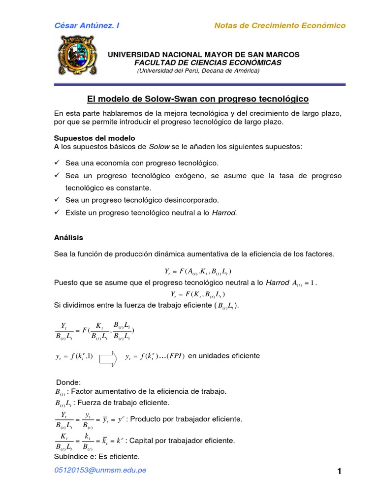 A los supuestos bsicos de Solow se le aaden los siguientes supuestos: