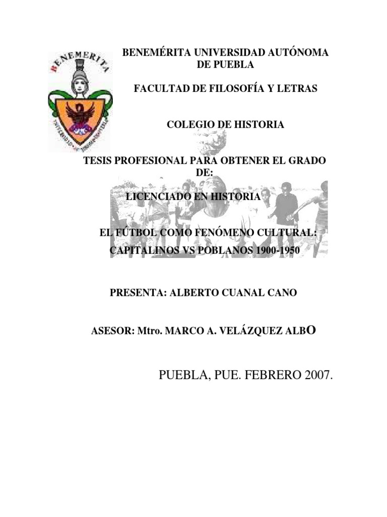 La tesis, El Ftbol como Fenmeno Cultural: Capitalinos vs Poblanos 1900-