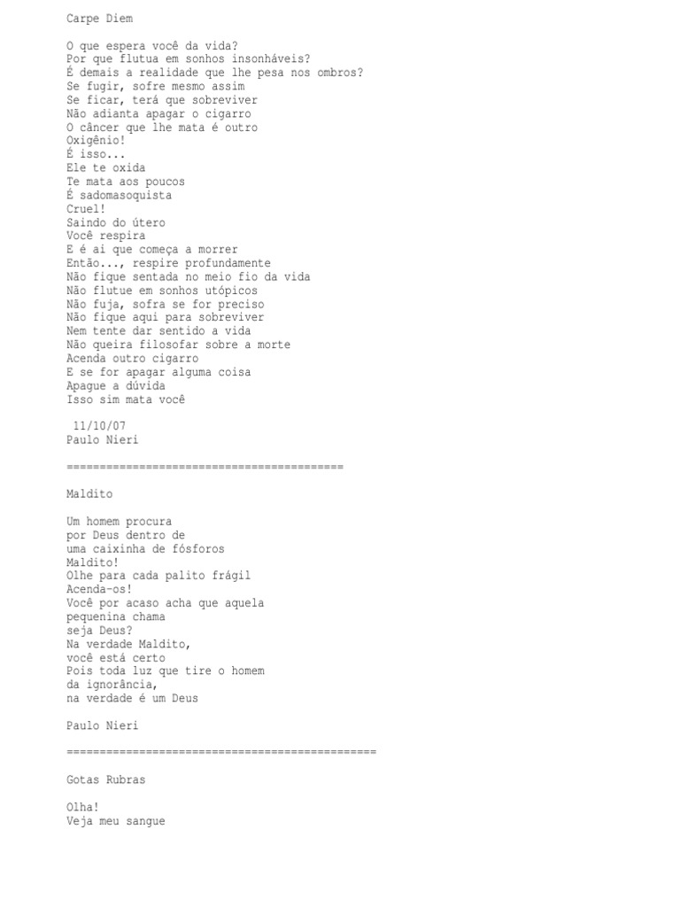 E por tudo sangrei at a ltima gota