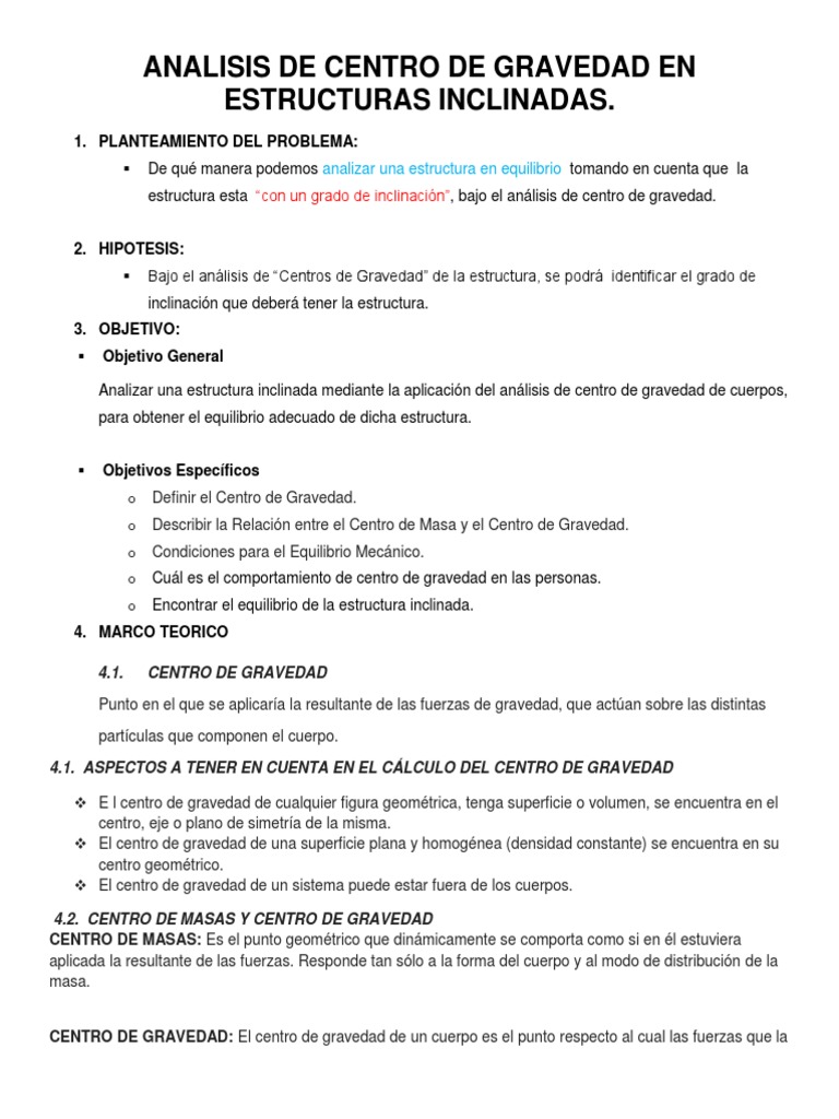 Analizar una estructura inclinada mediante la aplicacin del anlisis de centro de gravedad de cuerpos,