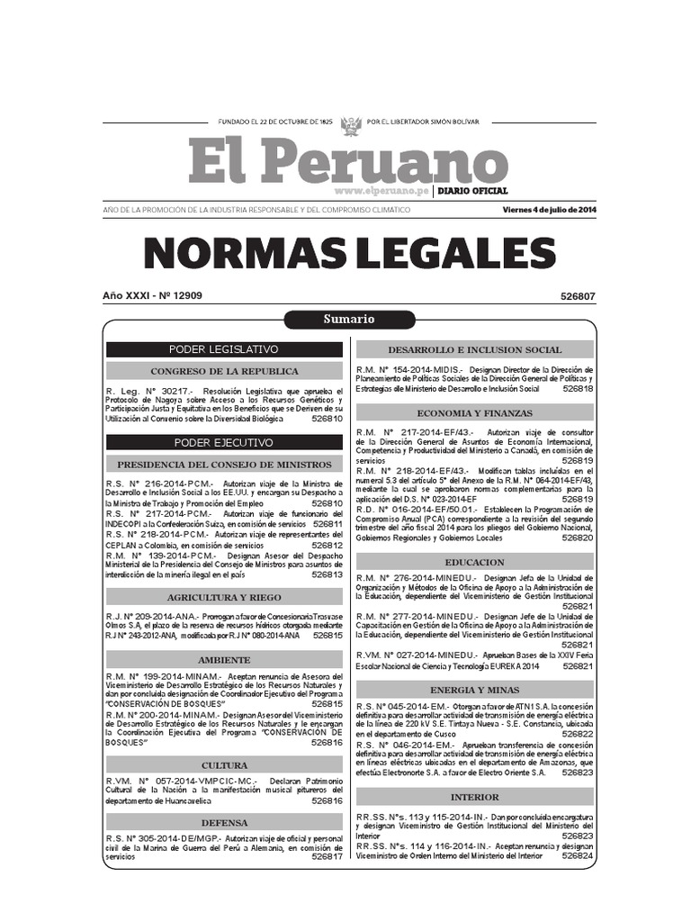 R.M. N 230-2014-PRODUCE.- Aprueban el reordenamiento