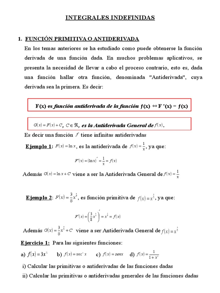 1. FUNCIN PRIMITIVA O ANTIDERIVADA