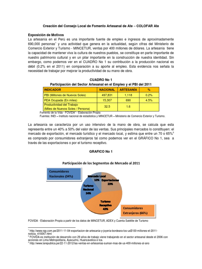 Creacin del Consejo Local de Fomento Artesanal de Ate COLOFAR Ate