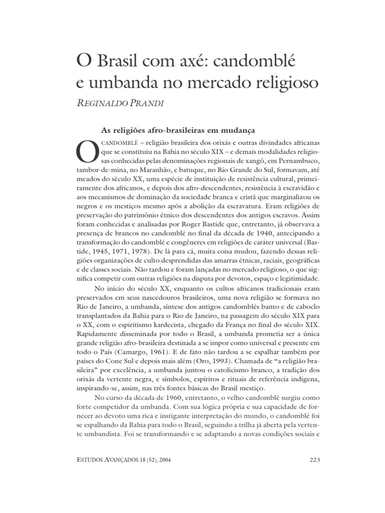 ABSTRACT – MUCH HAS changed in Brazil since the studies of Roger Bastide in the 1940s,