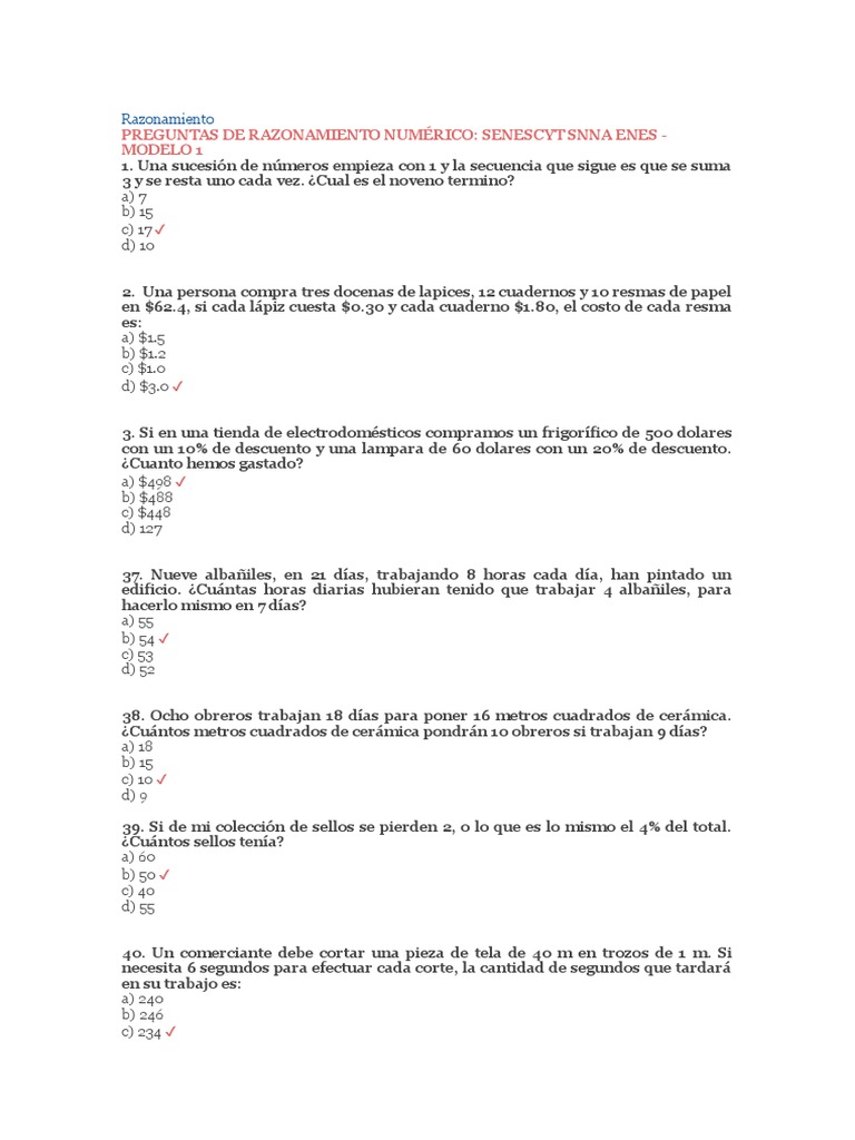 PREGUNTAS DE RAZONAMIENTO NUMRICO: SENESCYT SNNA ENES -