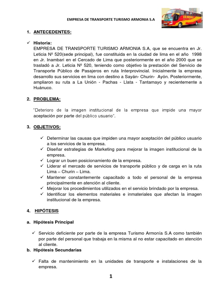 1. Si bien la empresa Turismo Armona S.A brinda en trminos generales un servicio