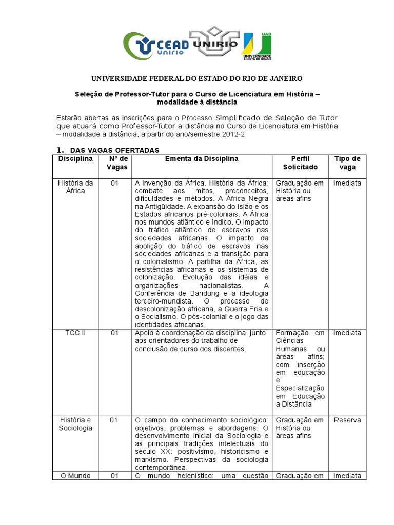 Seleo de Professor-Tutor para o Curso de Licenciatura em Histria