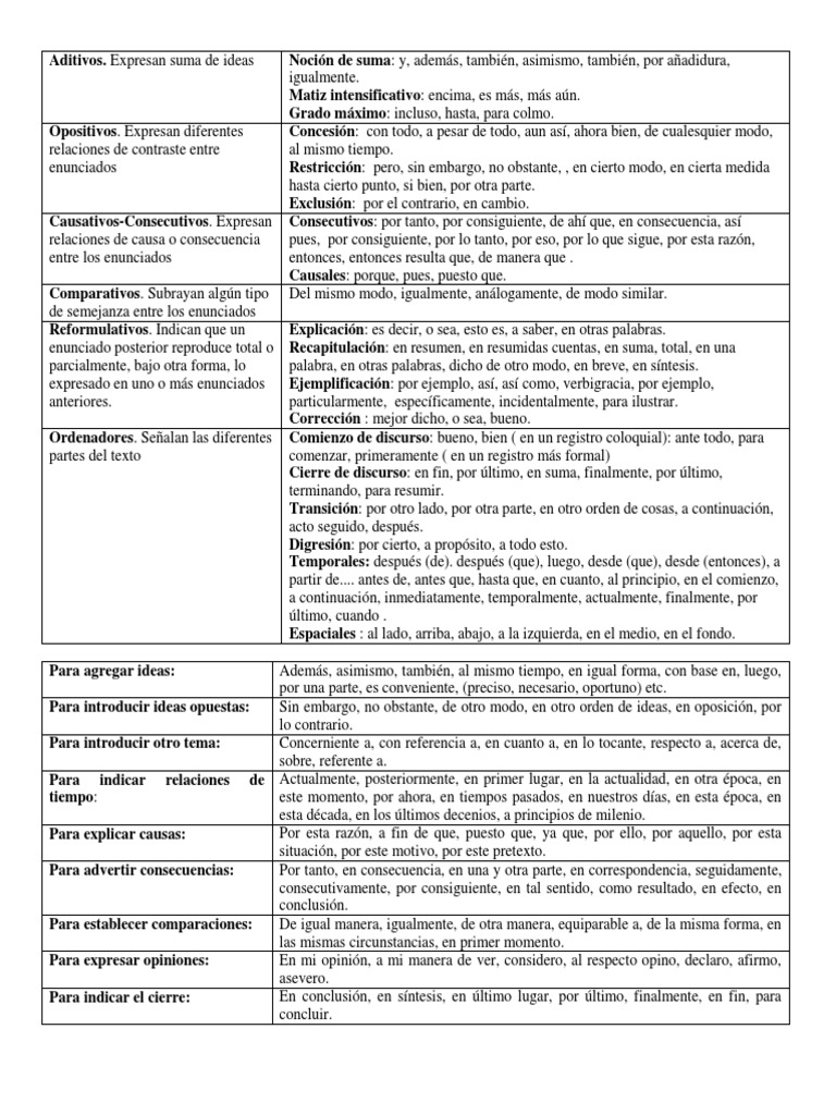 Para agregar ideas: Adems, asimismo, tambin, al mismo tiempo, en igual forma, con base en, luego,