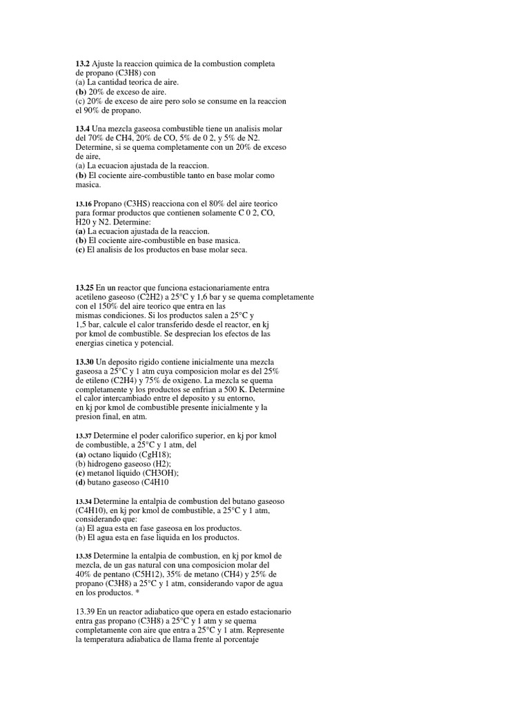 13.16 Propano (C3HS) reacciona con el 80% del aire teorico
