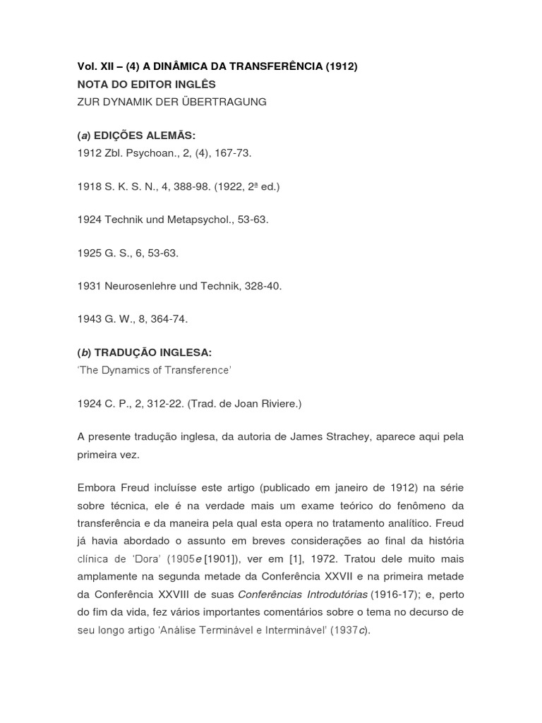 XII (4) A DINMICA DA TRANSFERNCIA (1912)