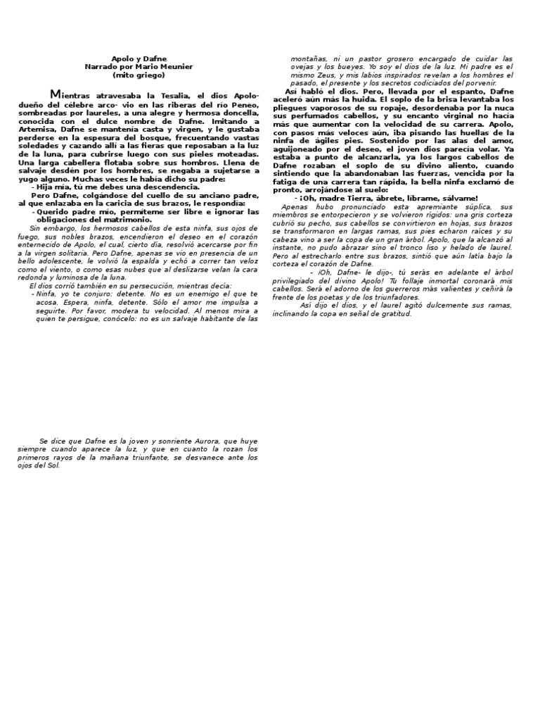 As "abl1 el dios# !ero, llevada por el espanto, Dafne