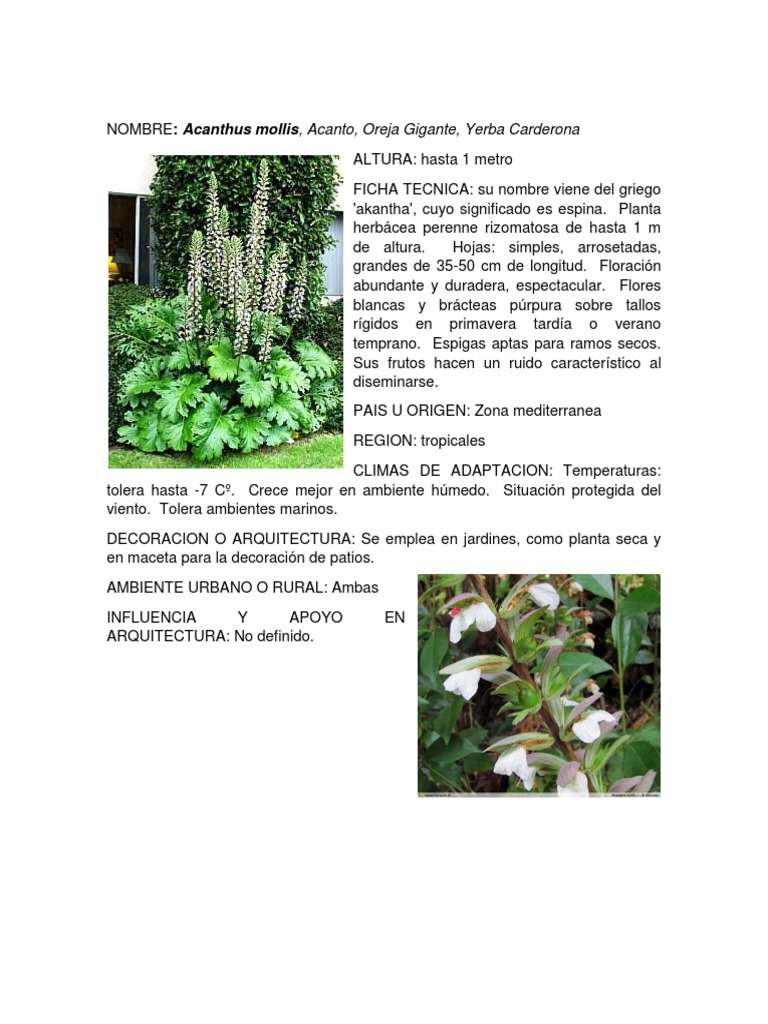 NOMBRE: Acanthus mollis, Acanto, Oreja Gigante, Yerba Carderona
