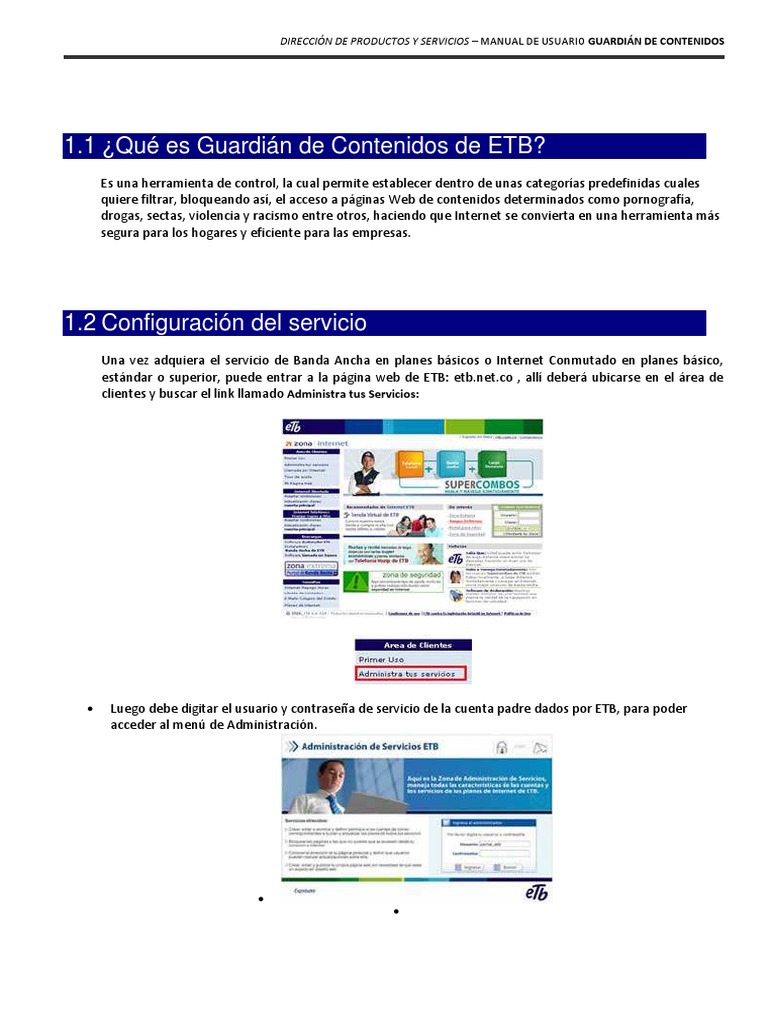 Internet) y 1 de servicios (administracin de cuentas hijas, correo, Guardin de Contenidos, claves y PWP).