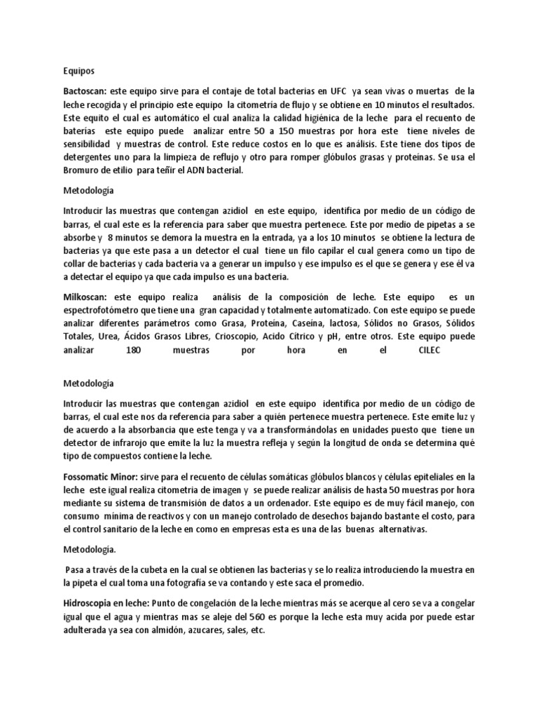 Totales, Urea, cidos Grasos Libres, Crioscopio, Acido Ctrico y pH, entre otros. Este equipo puede