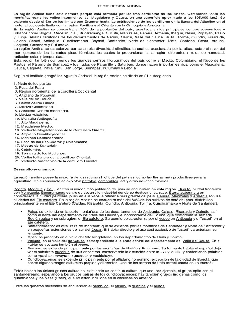 Resumen Region Andina