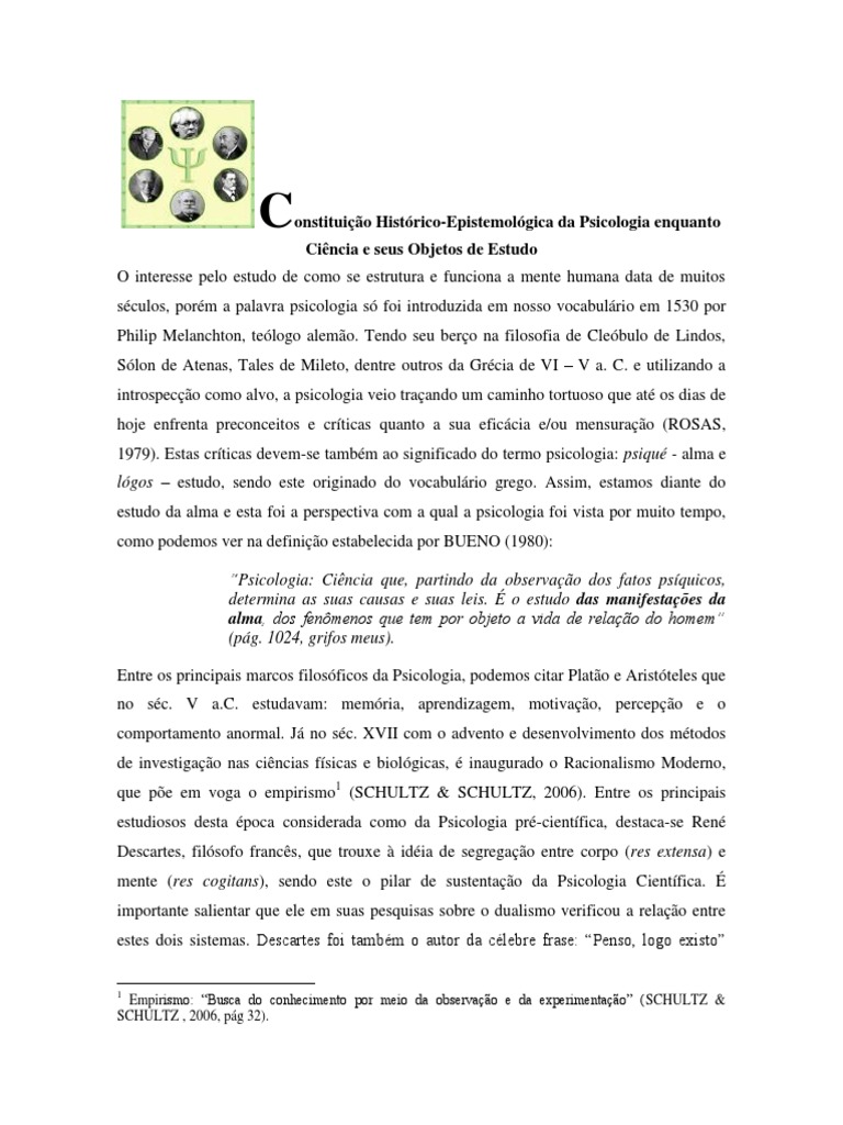 Constituio Histrico-Epistemolgica da Psicologia enquanto