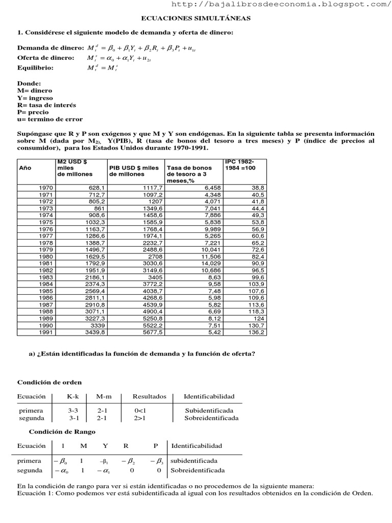 1. Considrese el siguiente modelo de demanda y oferta de dinero: